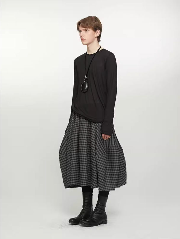 Layered pin-checked skirt