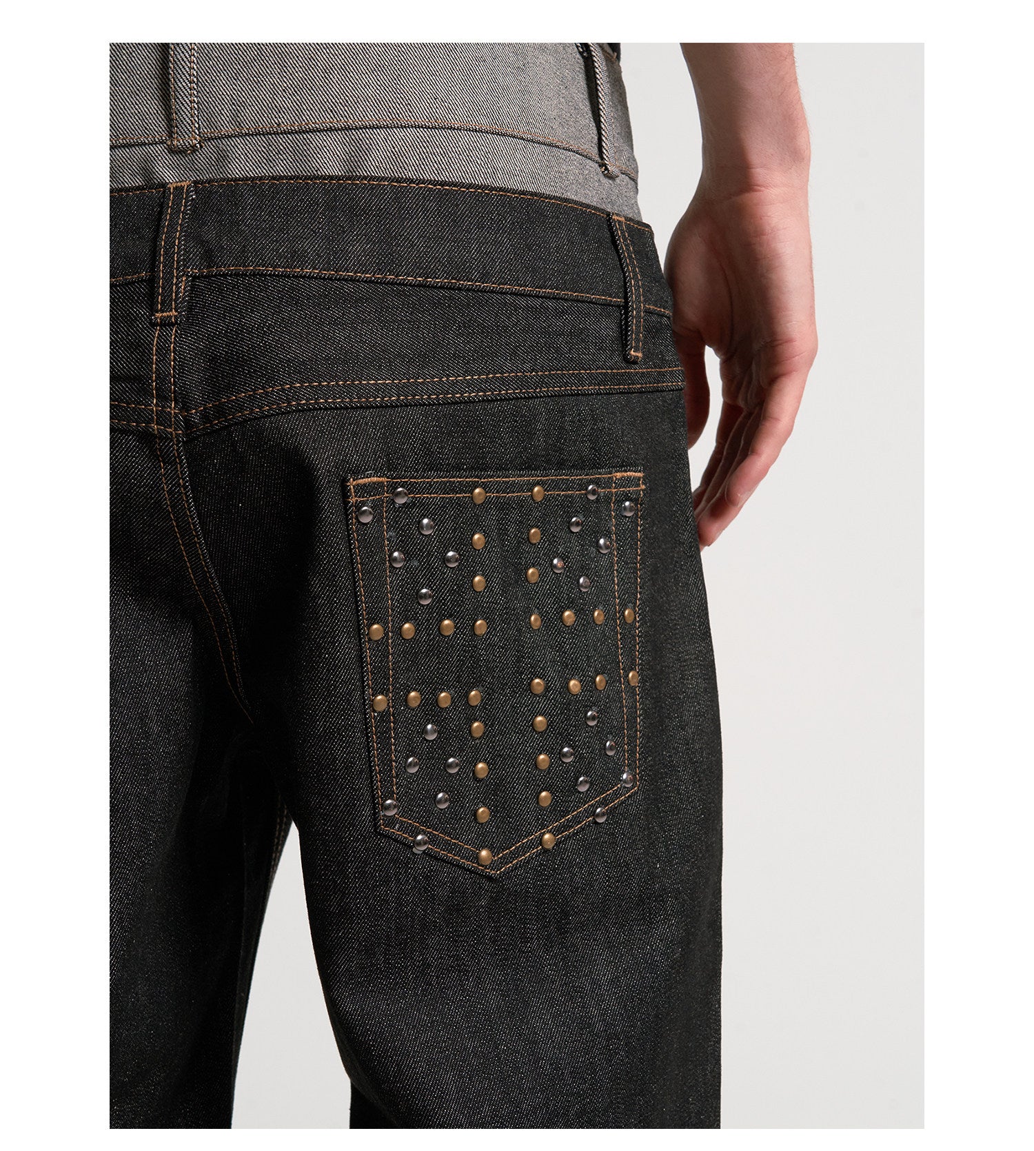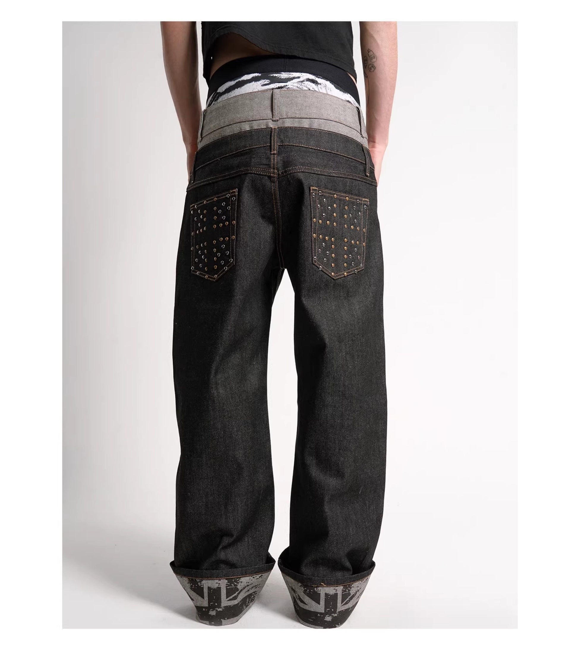 Double waist cuffed straight jeans