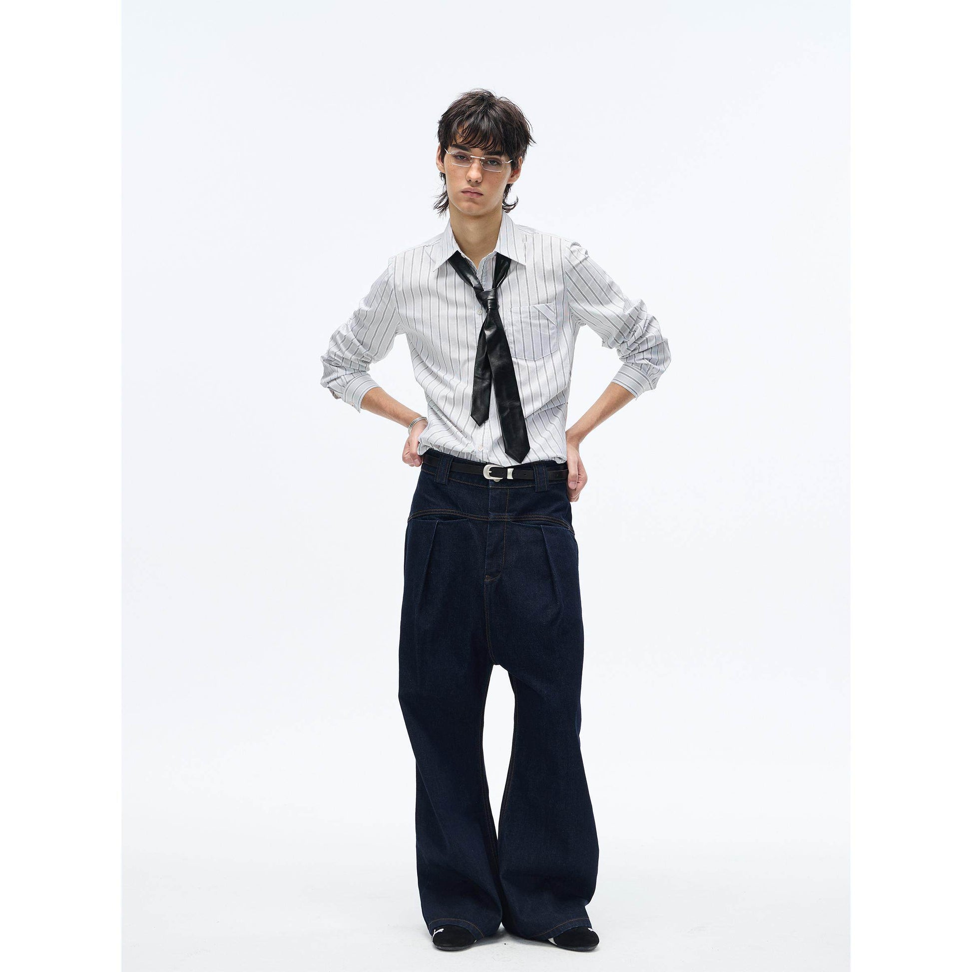 Striped 3D pleated shirt