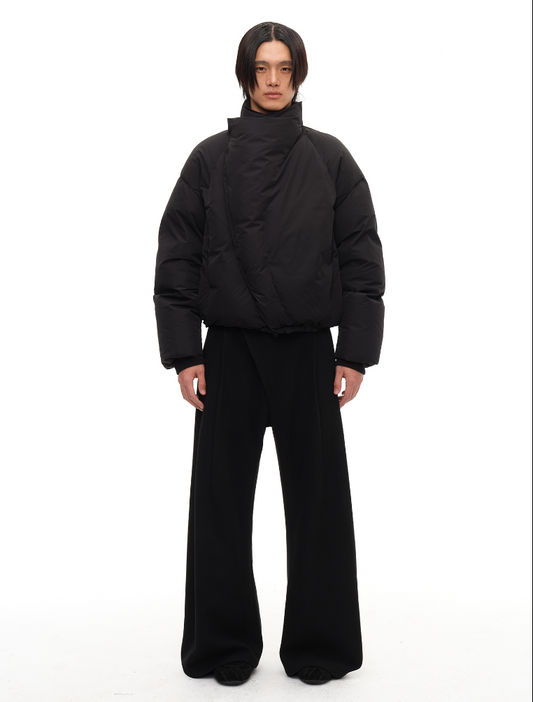 Curved zipper turtleneck down jacket
