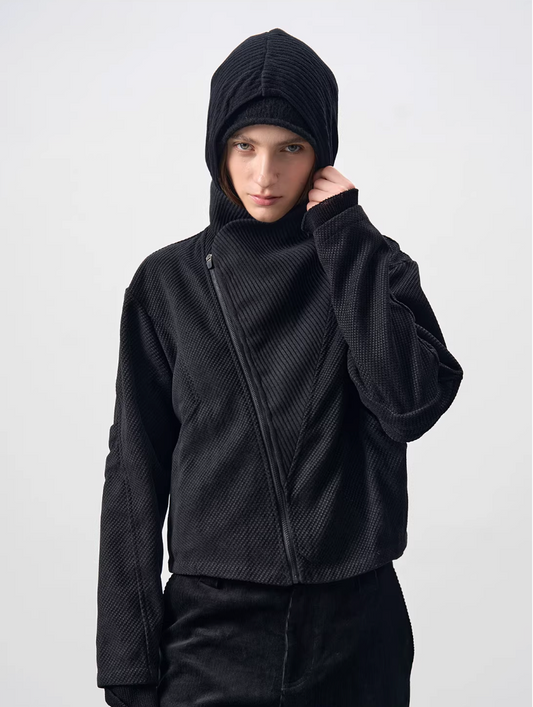 Multi-Structure Hooded Leather Jacket