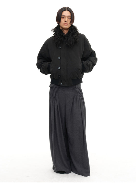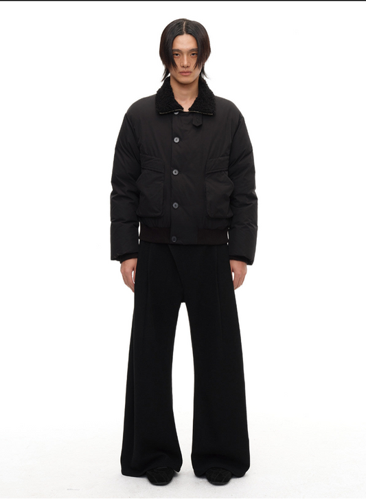 Fur Collar Slip Pocket Buttoned Down Jacket