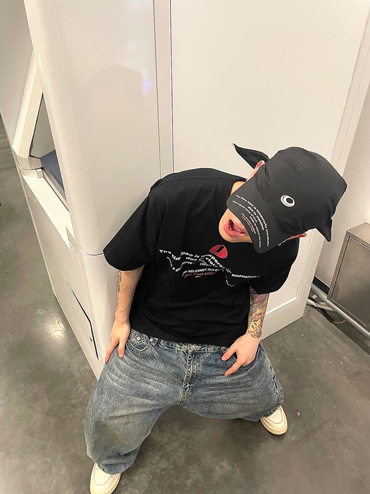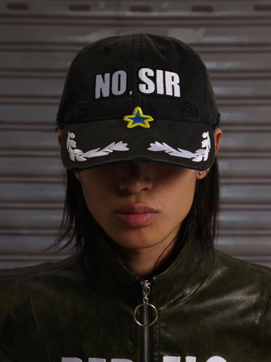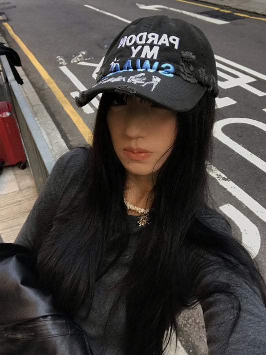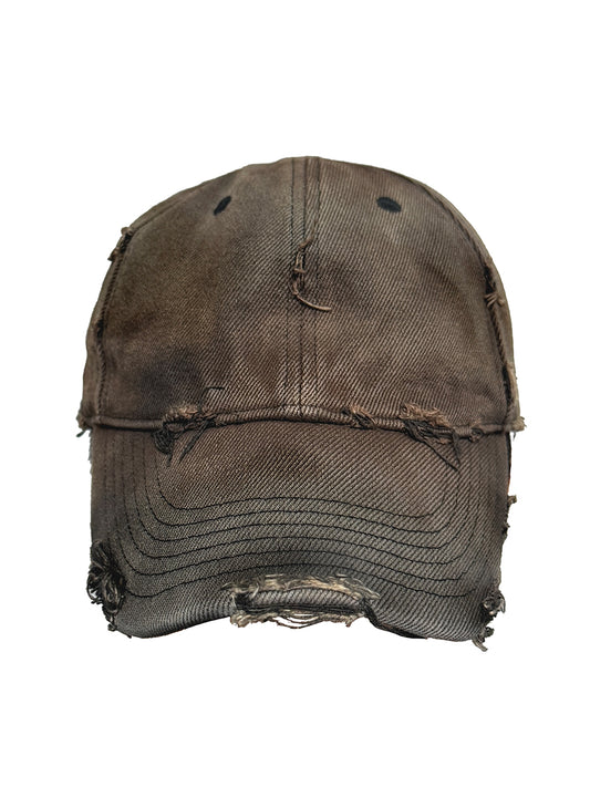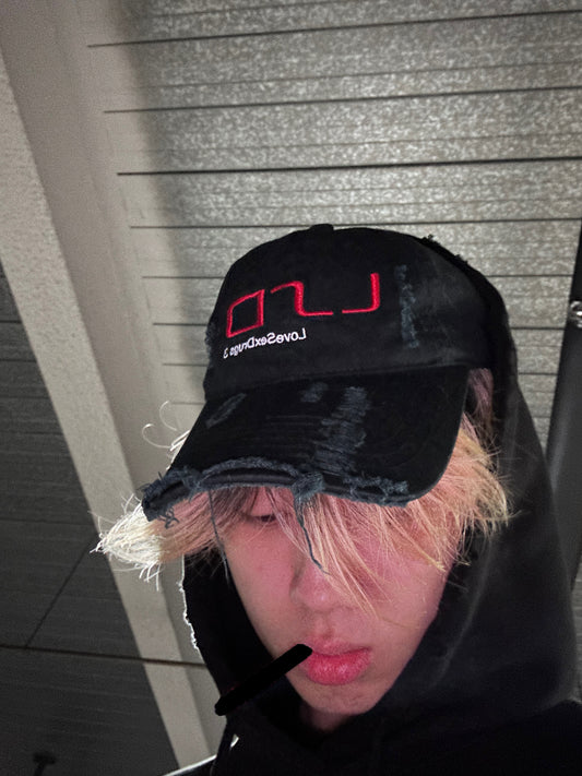 DISTRESSED WASHED BLACK HEAVILY EMBROIDERED LSD CAP