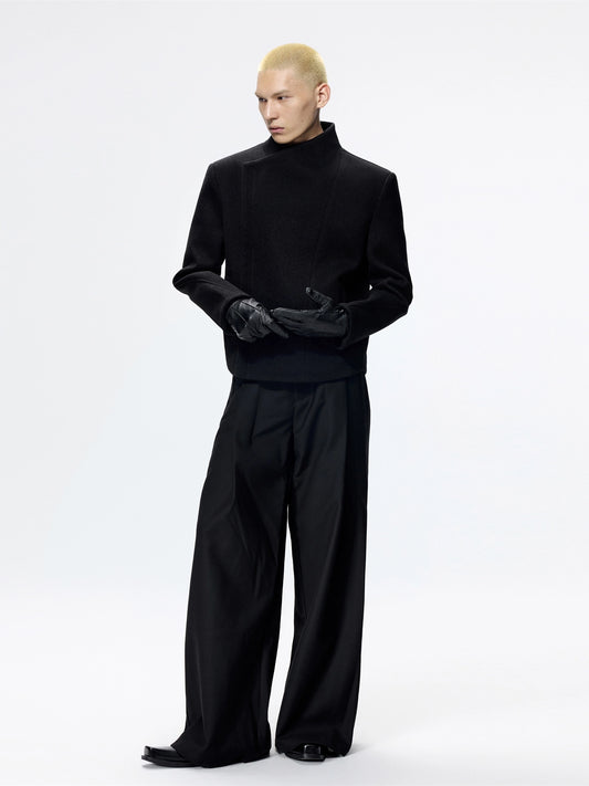 Stand-up Collar Cropped Wool Jacket