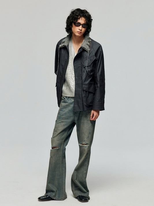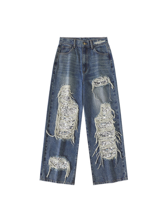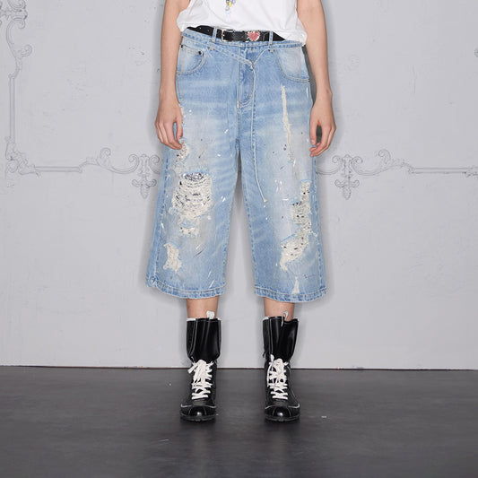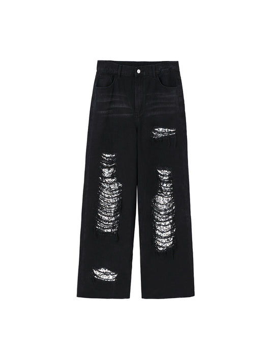 Dirty Aged White Cow Straight Wide Legs Jeans