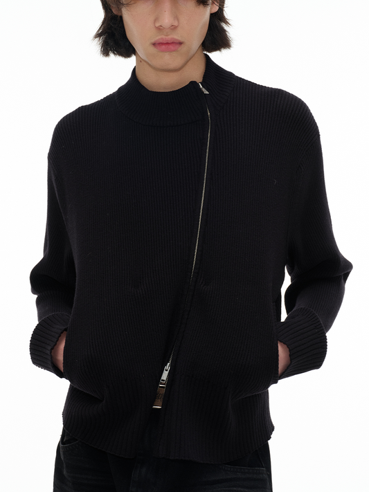 DOUBLE SPLIT DIAGONAL ZIPPER KNIT