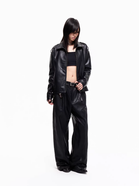 Heavy Texture Matte Gloss PU Leather Jacket