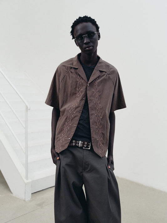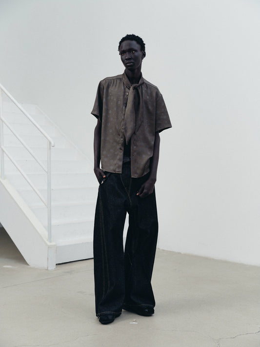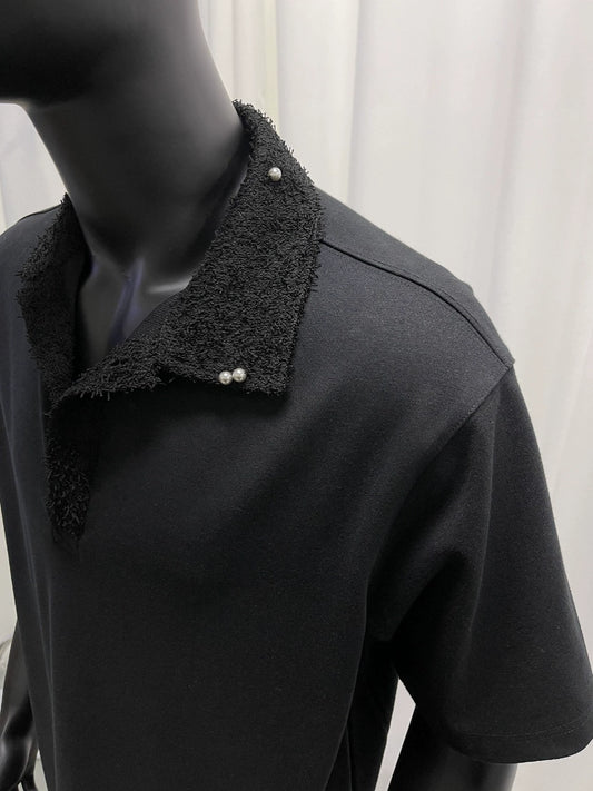 "Silver Gray Pearl" Woven Collar Short Sleeve POLO