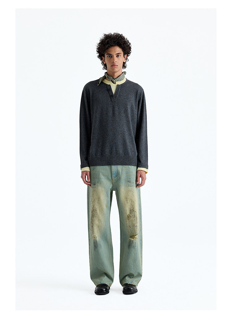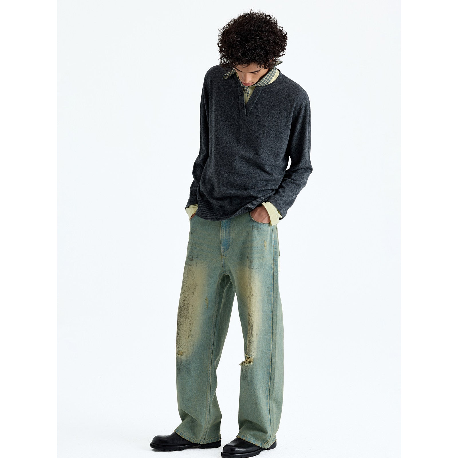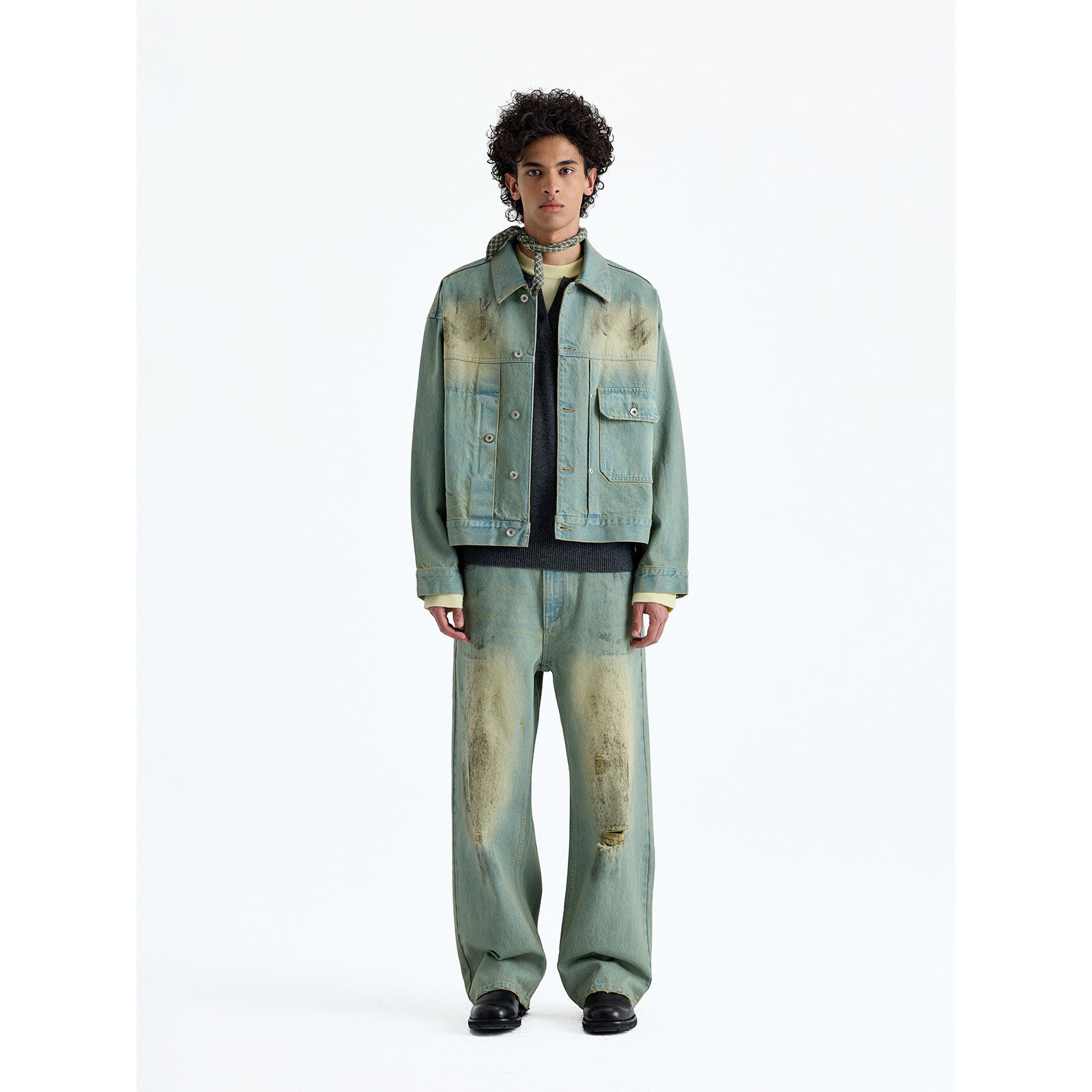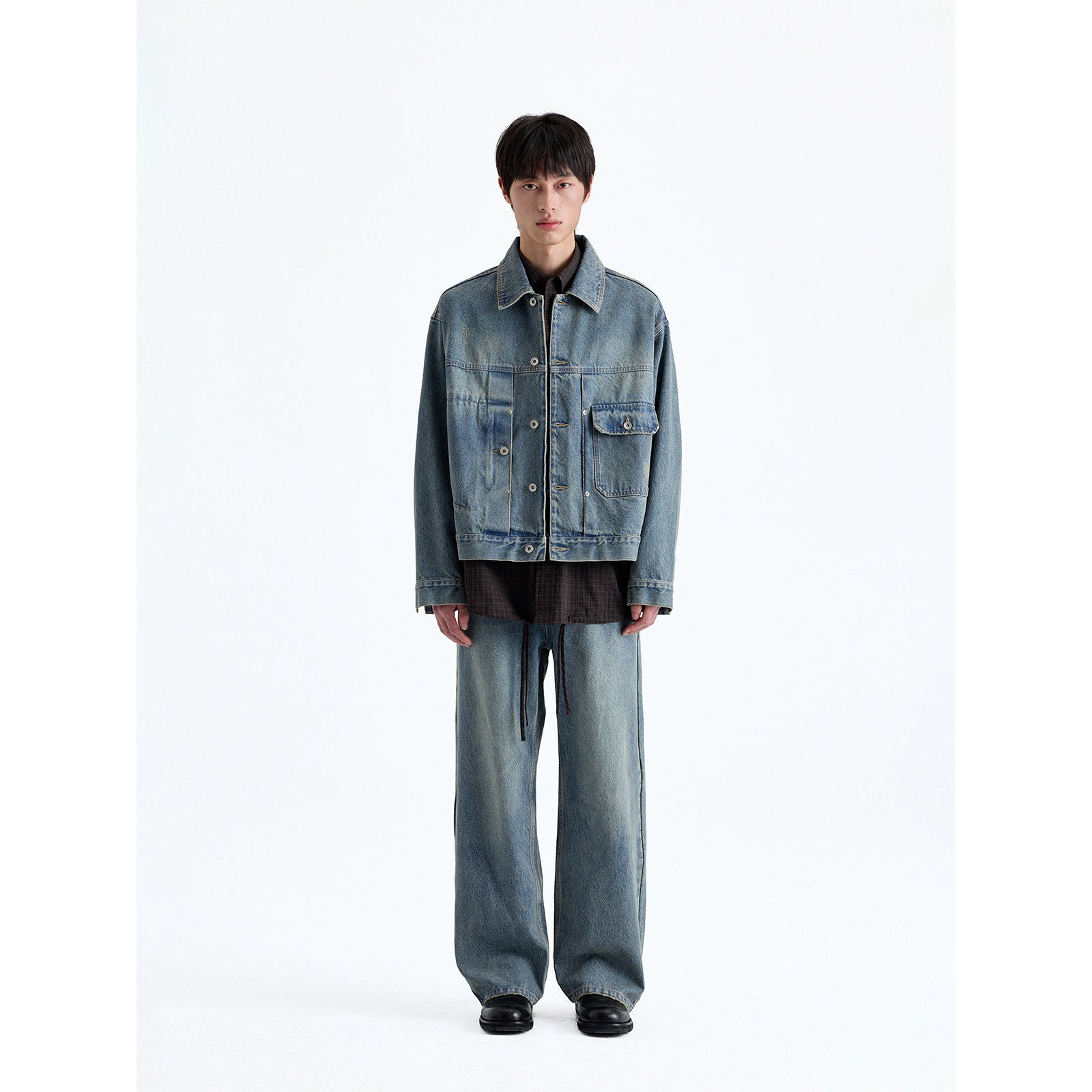 複数回のウォッシュ加工と破れ加工により、ヘビーウェイトのヴィンテージ感を醸し出しています。