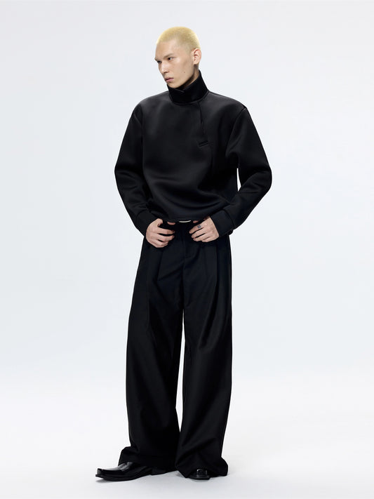 Slanted Neck Long Sleeve Polo Sweat Shirt