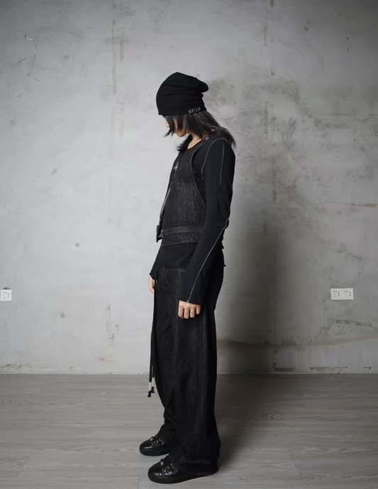 Black Red Ear Denim Vest