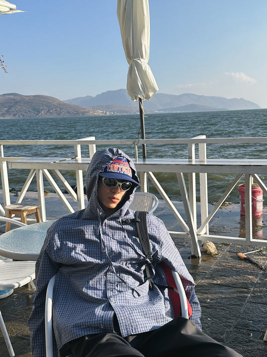 Blue CP Hand Plaid Hooded Shirt Jacket
