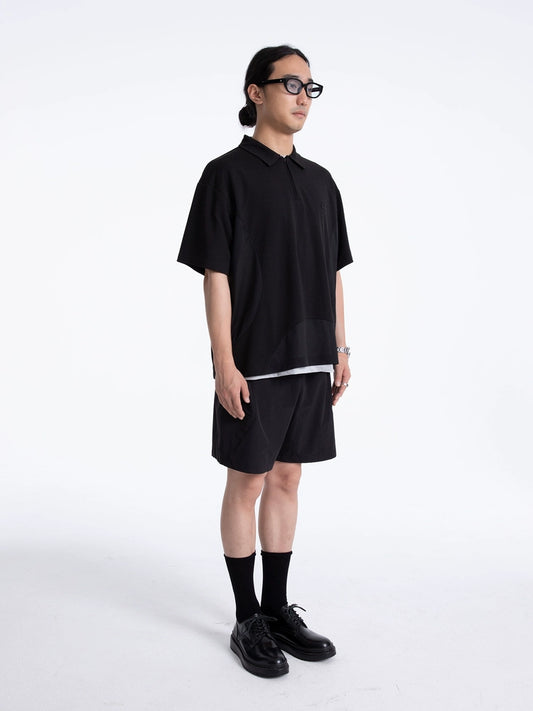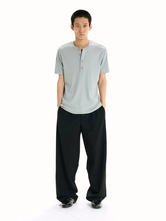 • Henley Collar Pit Strip Short Sleeve T-Shirt