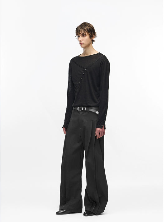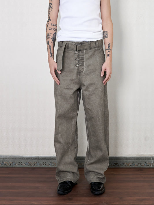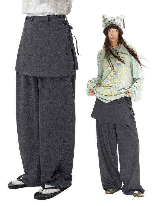 "Lunar Eclipse" loop-up grey live-pleated kendo trousers