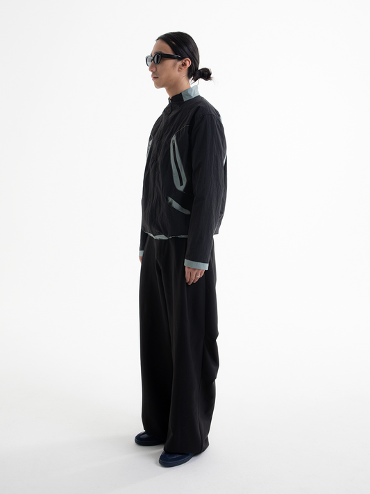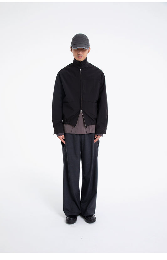 Double Zip Pleats Nylon Jacket