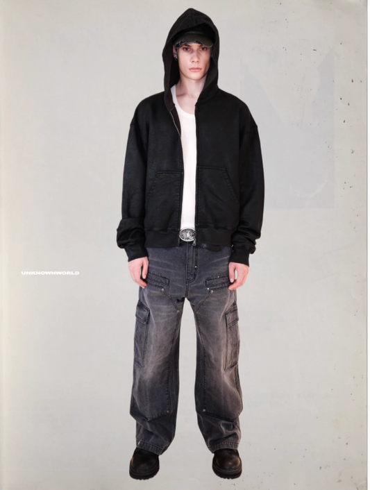 Hand-waxed Loose Hoodie Zip Sweatshirt