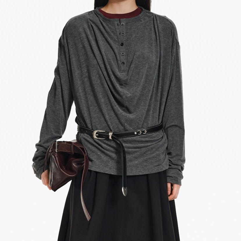 3D Pleats Draped Long Sleeve T-shirt