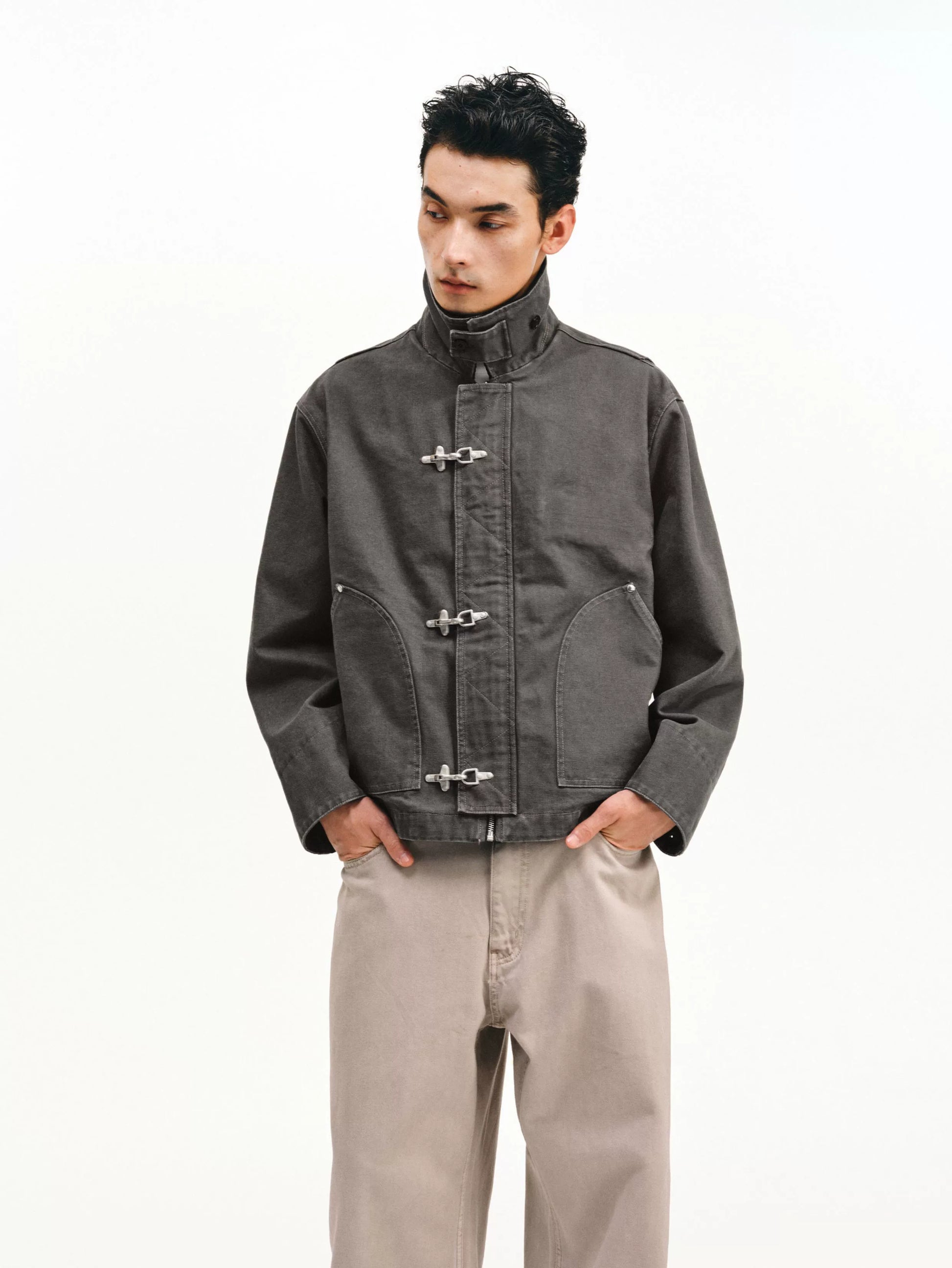 ジャケット全体に走る直線的なパターンラインと相まって、力強くも洗練された印象を演出します。