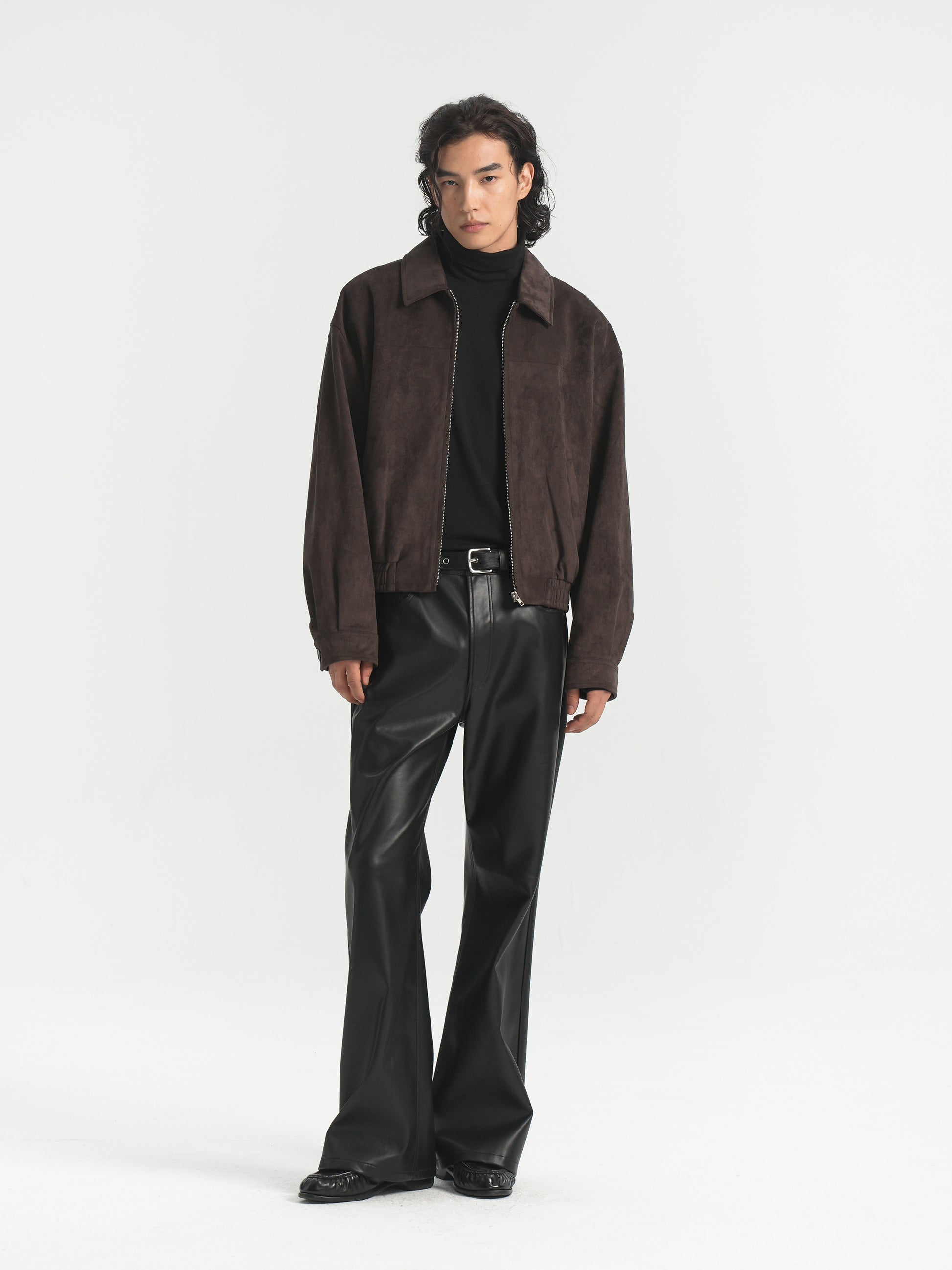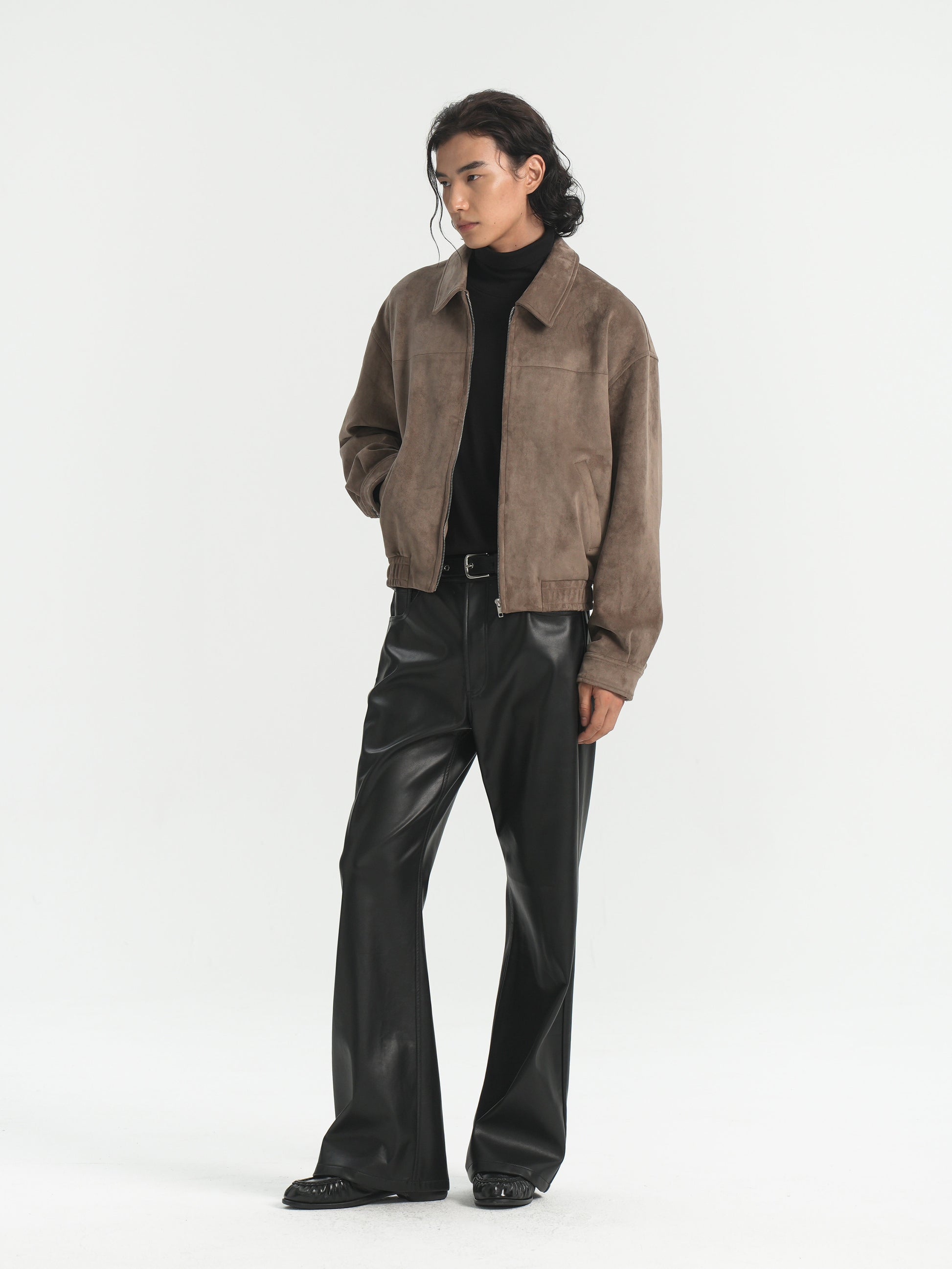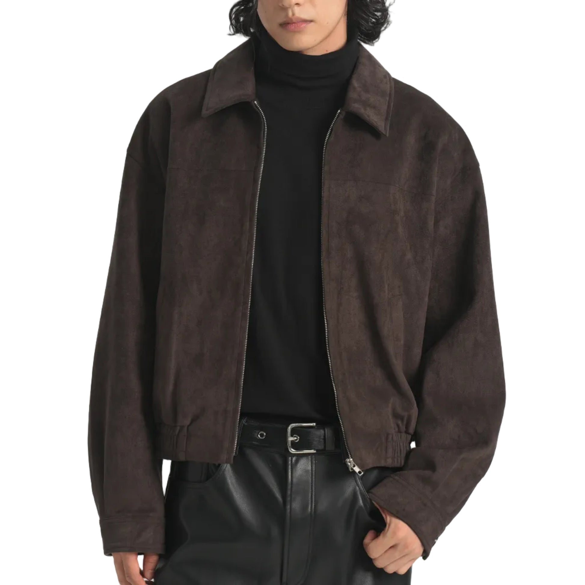 BOXY SUEDE WIDE LAPEL ZIP-UP JACKET