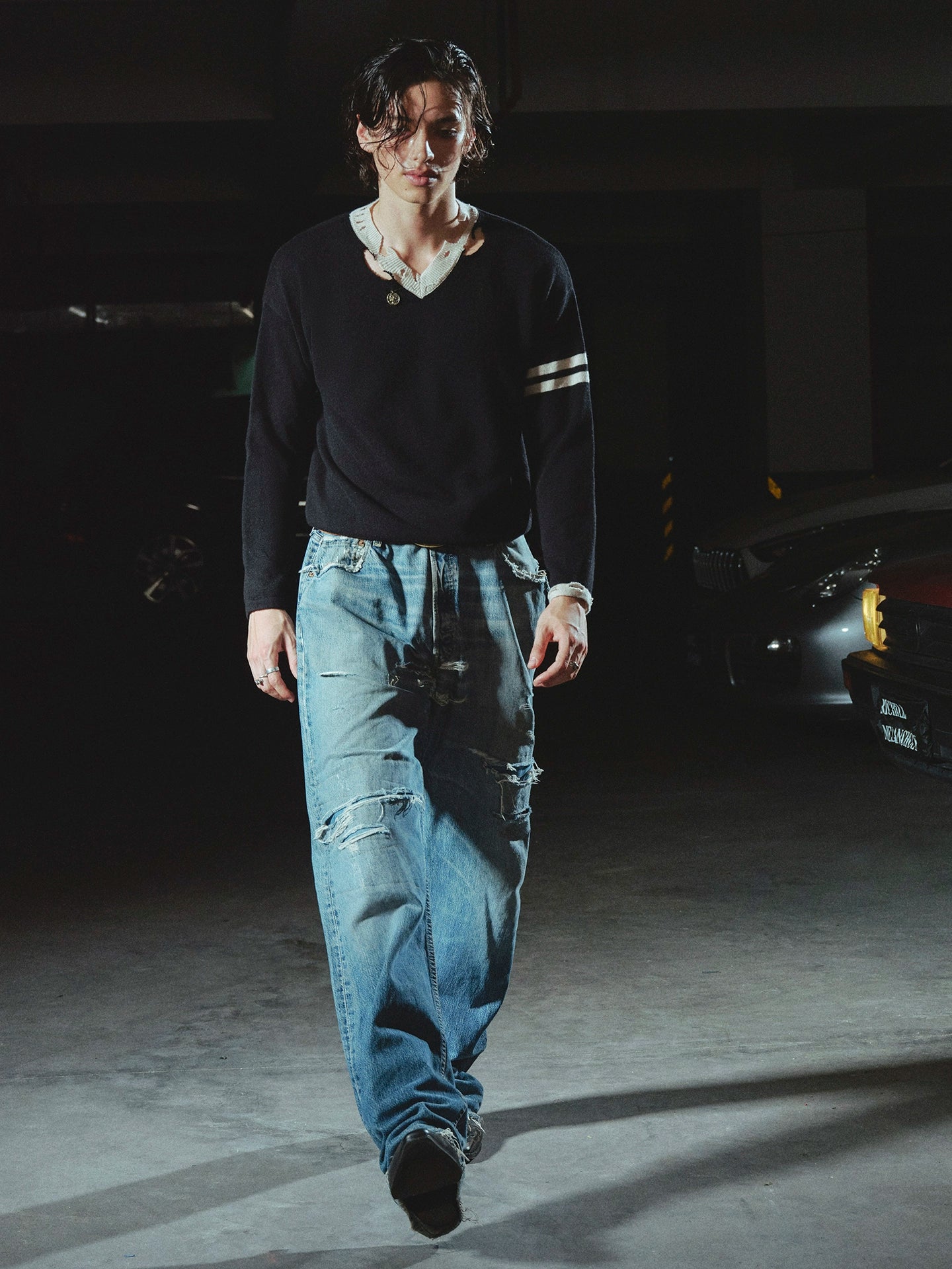 Brass Ancient Coin V-Neck Pure Wool Knit