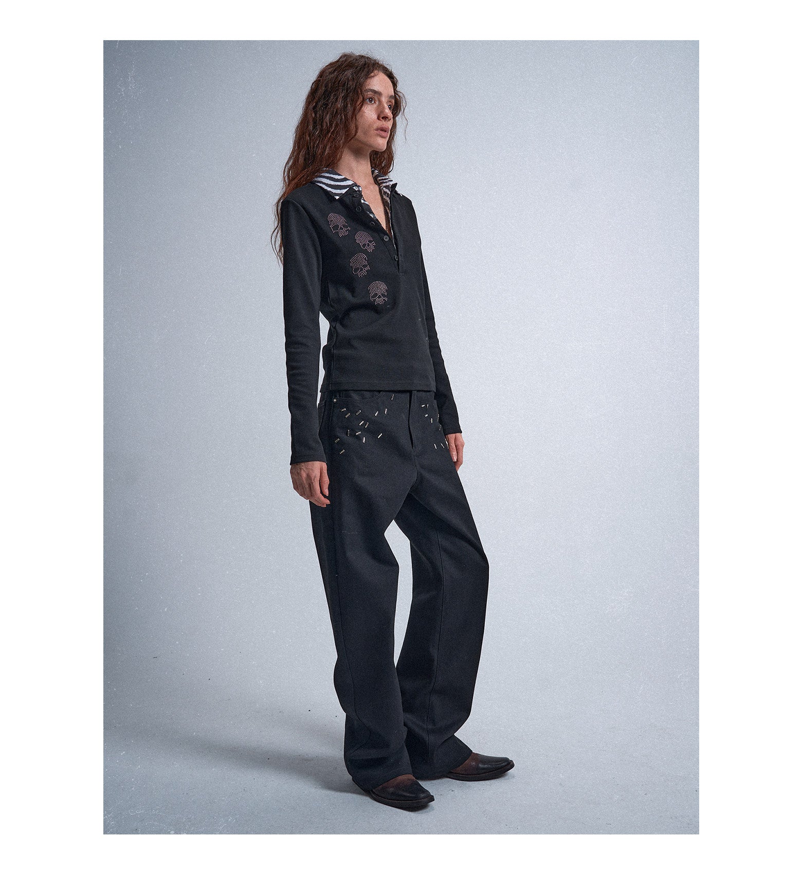 | サイズ | 総丈 | ウエスト | ヒップ | 裾幅 |