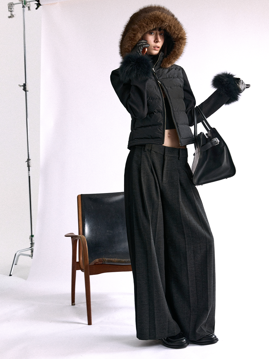Paneled Pleated Straight Wool Trouer