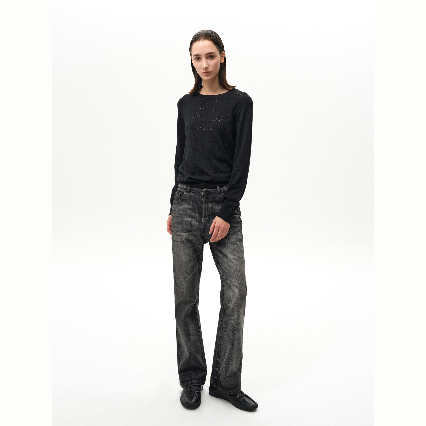 Rubber wax bootcut jeans
