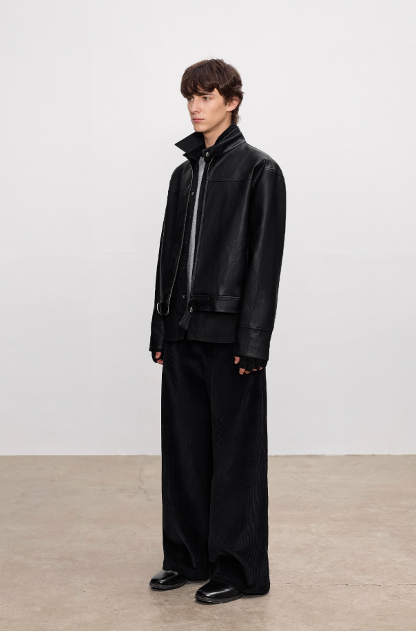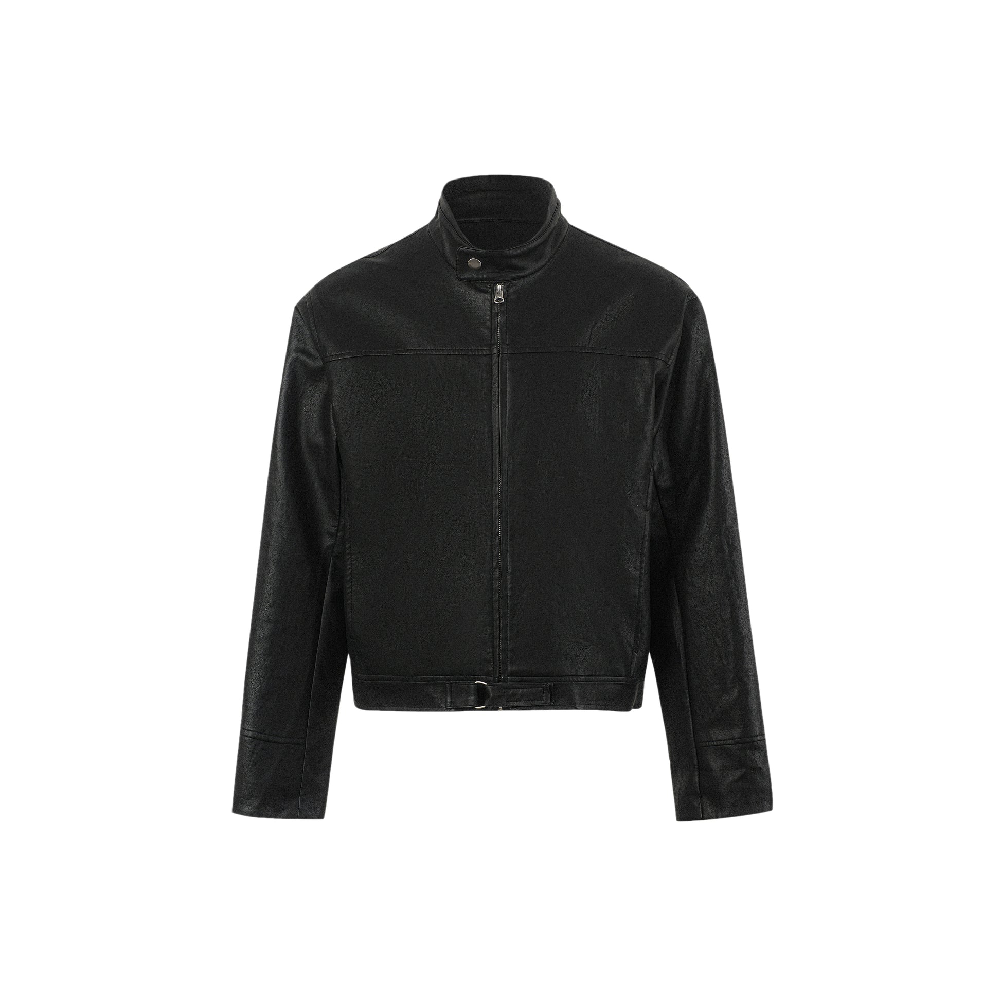Silver Buckle Cracked Motorcycle PU Leather Jacket