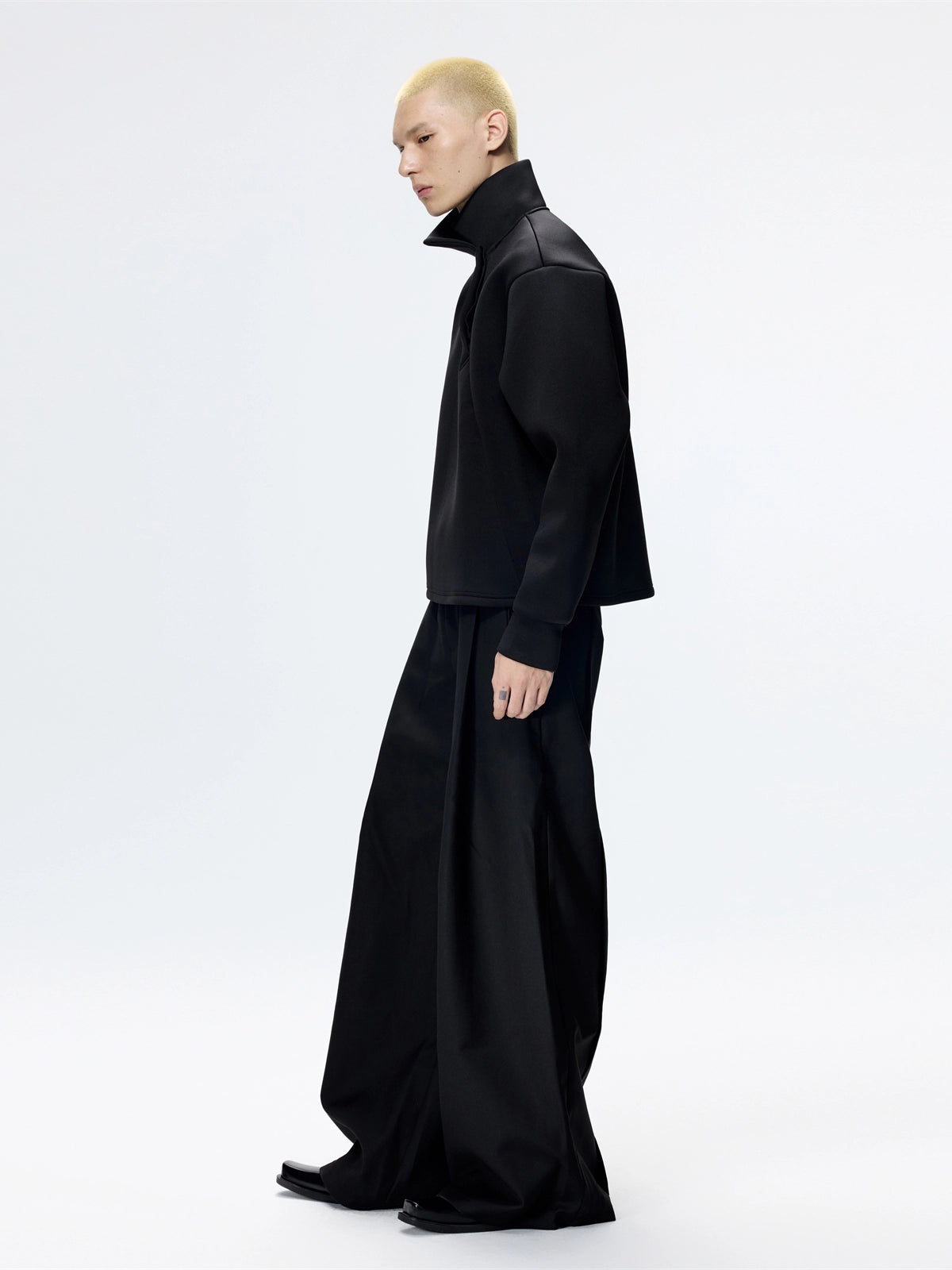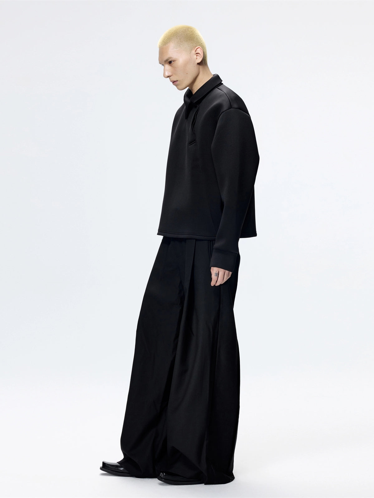 Slanted Neck Long Sleeve Polo Sweat Shirt