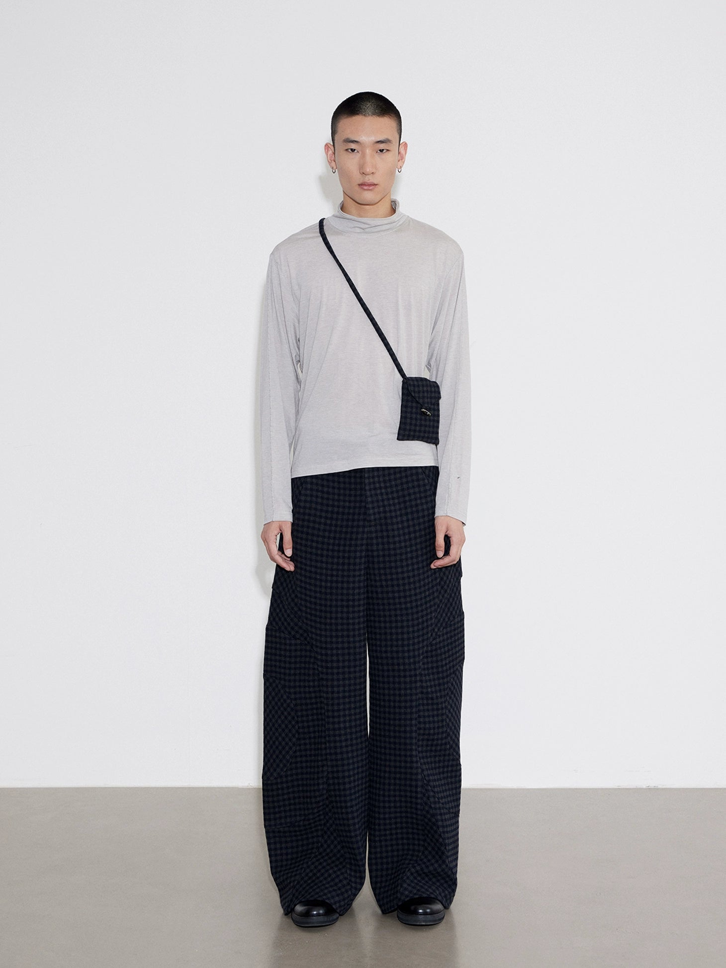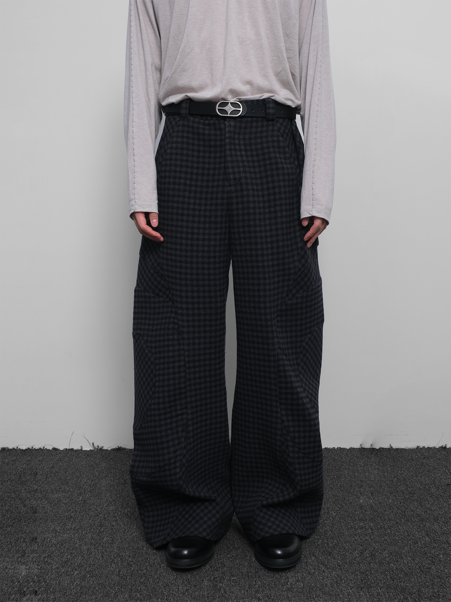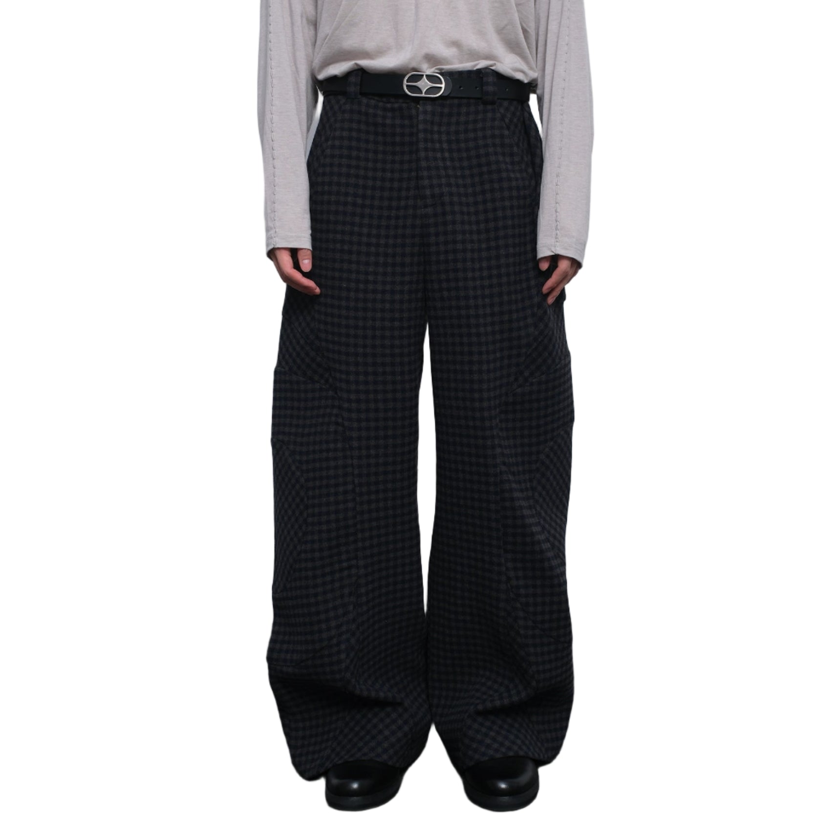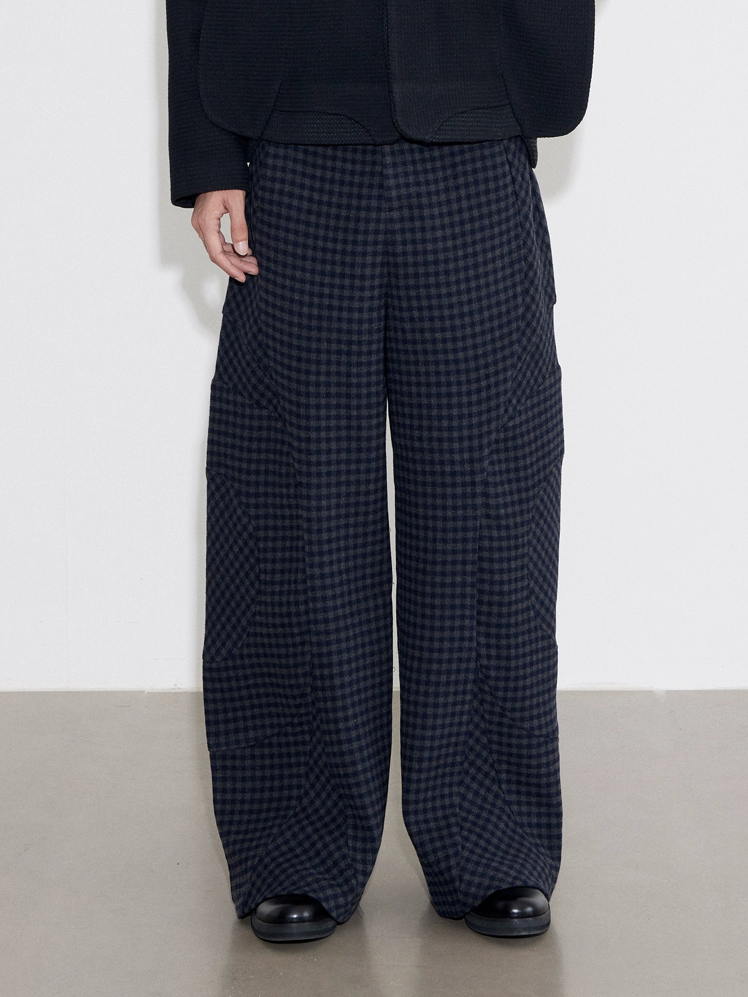 Wool Plaid Wide Leg Pants