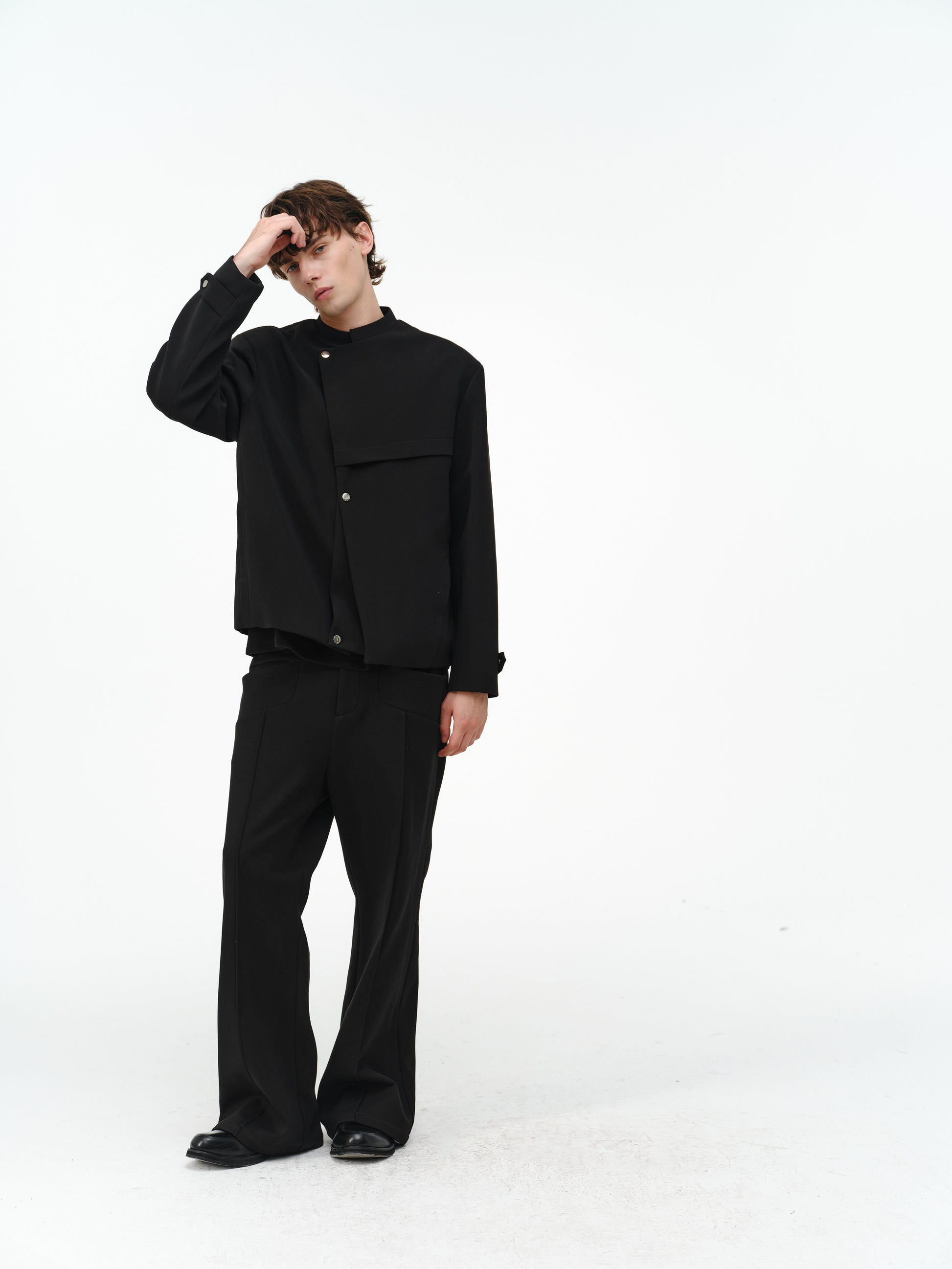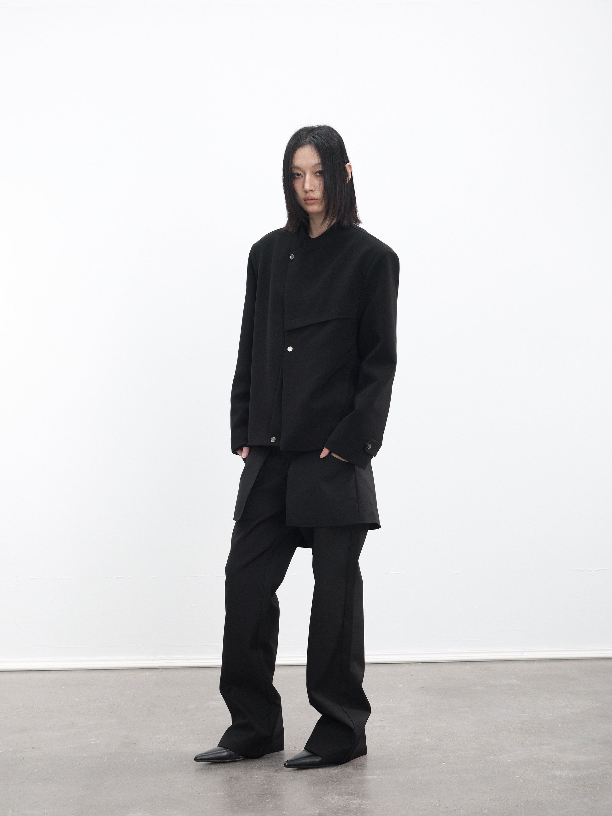 Stand-up collar deconstructed multi-snap jacket
