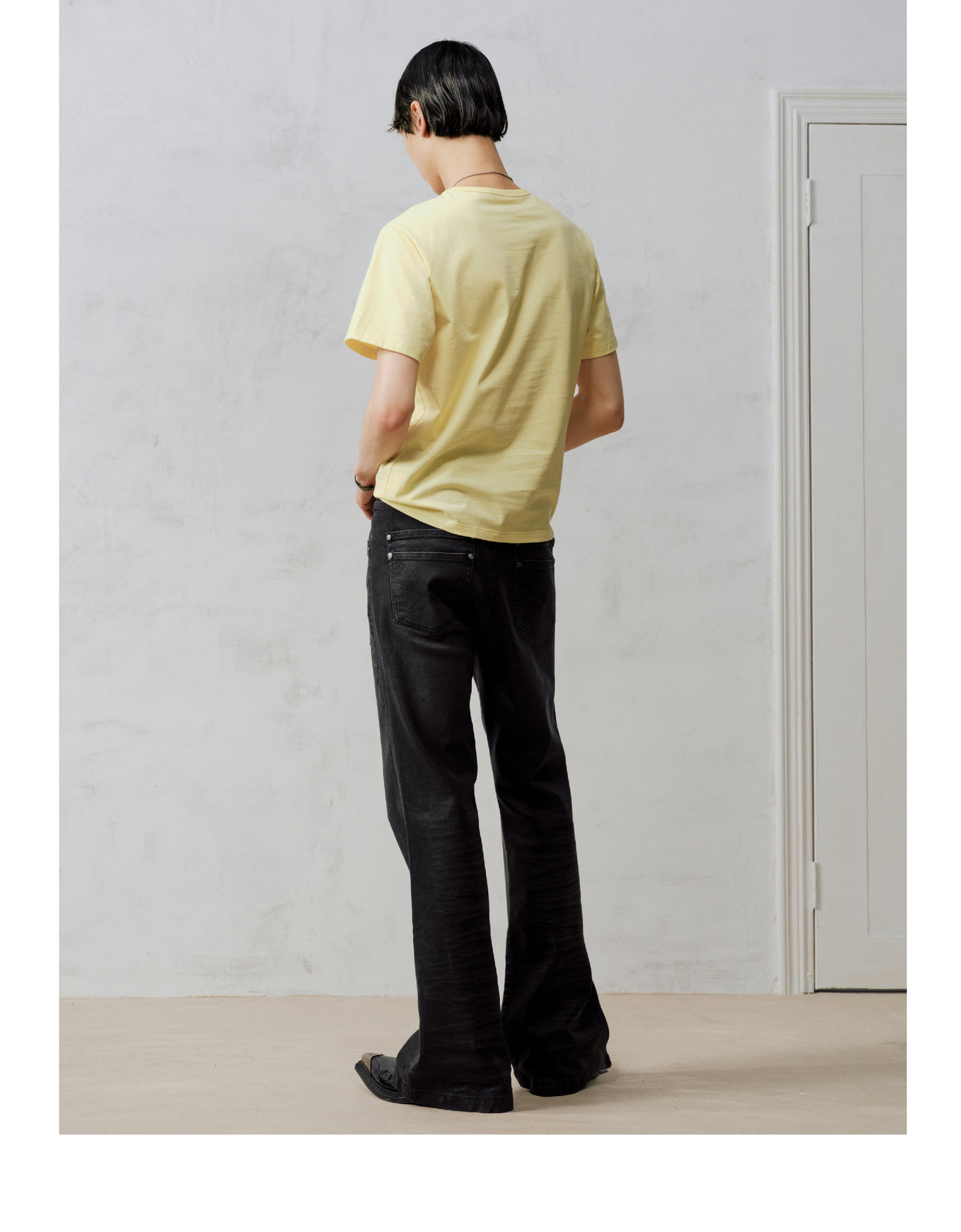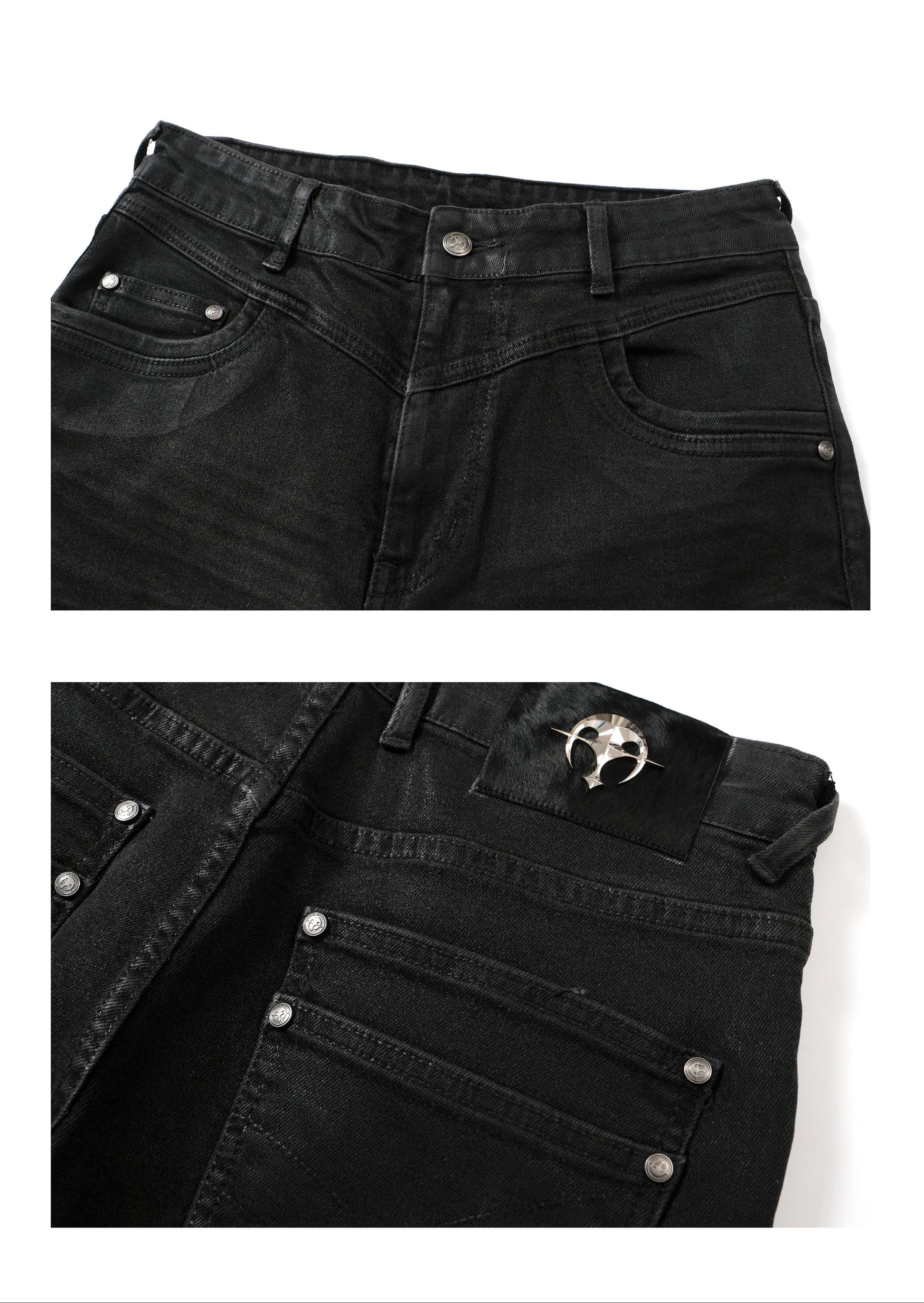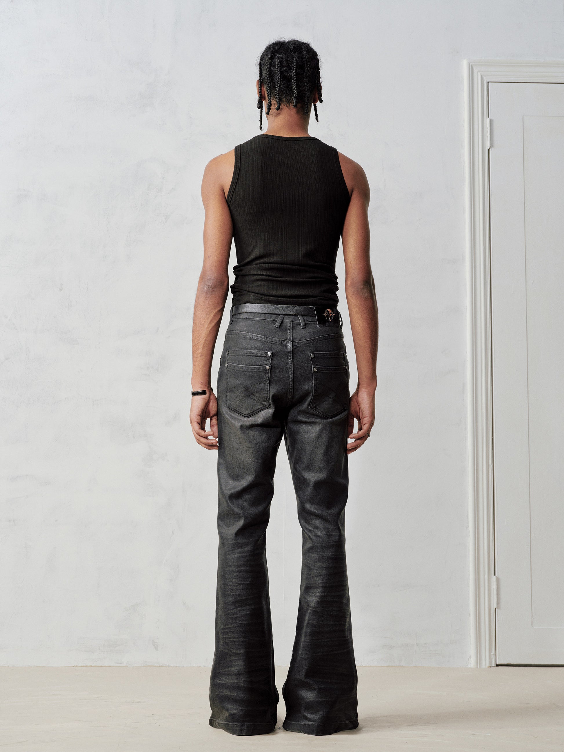 Wax coating bootcut jeans